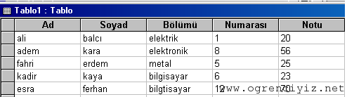 2)       ODER BY komutu kullanılır.Kullanım şekli şöyledir: